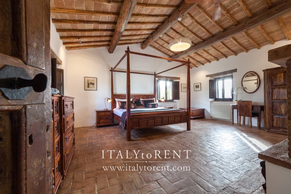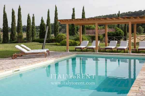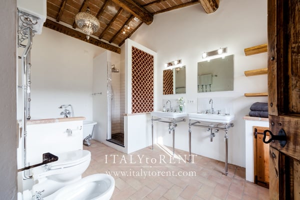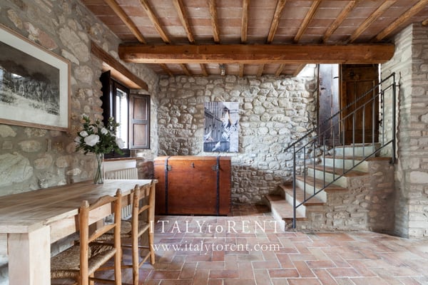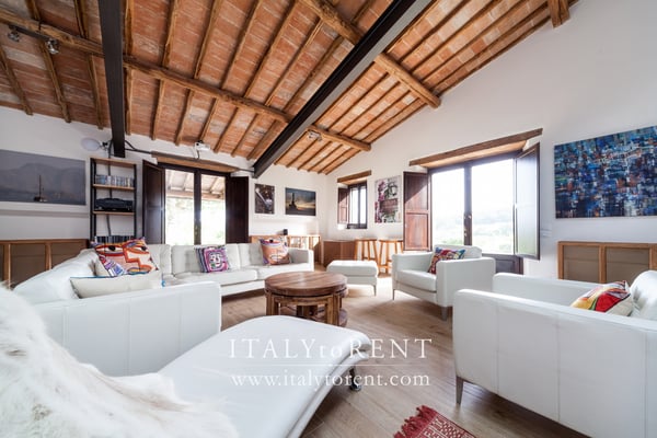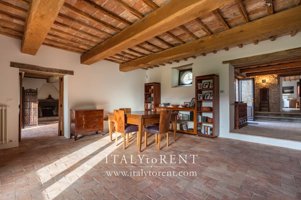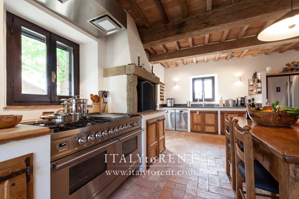 Tenuta Pulceria has recently been totally restored to a high specification. The property is characterized by a bright and airy interior with traditional details, terracotta floor tiles and oak or chestnut wood beam ceilings in every room, combined with many original fireplaces and stone walls. The villa is perfectly appointed and well maintained - large bedrooms feature grand wooden furniture and each have their own stylish bathroom; a farmhouse kitchen with top-end appliances and a spacious studio with contemporary living both open to the garden pergola dining area.
