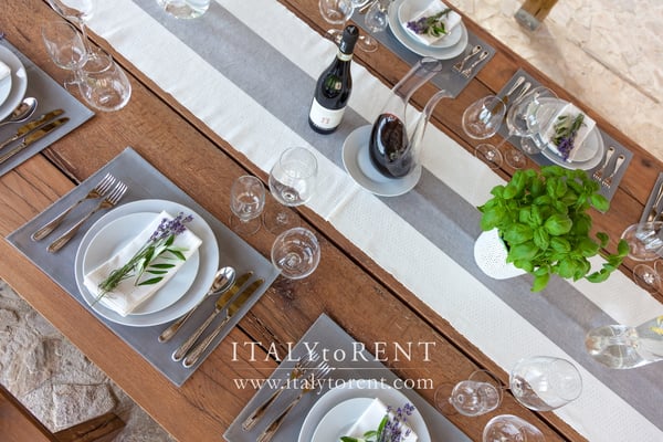 The extensive, manicured garden has a corner with herbs (available for use) next to the Pizza oven, large areas with lawns ideal for children, orchards with fruit trees (mulberries, figs, apricots, plums, apples, pears – all available for guests in season), lavender, Italian cypress, olive trees and a magnificent oak tree overlooking the entrance courtyard to Tenuta Pulceria.