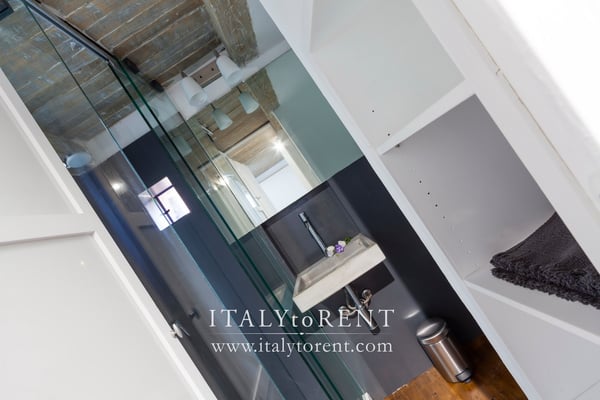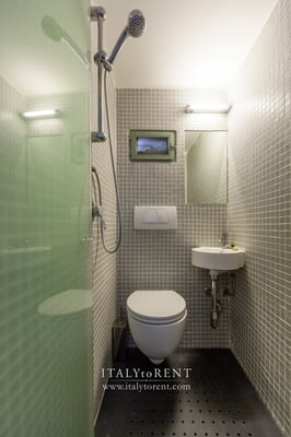 One of the smaller bathrooms has a cute small window inside the shower box, from where you can enjoy one of the best views of the entire property, towards the village of Trevi and the countryside.