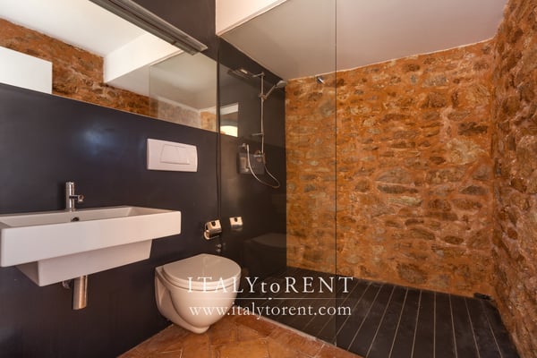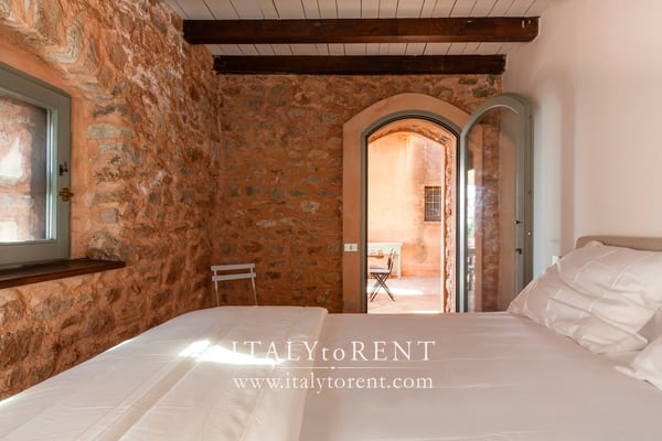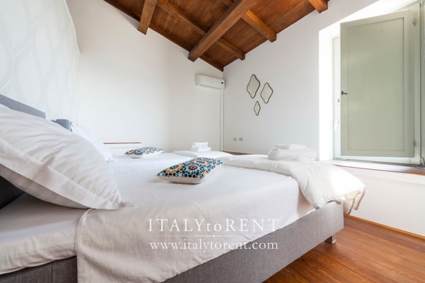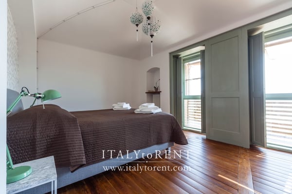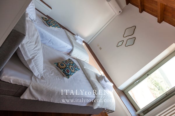 The sleeping area of the main house is on the first and second floor. It is composed of 3 bedrooms, one master bedroom with walk in wardrobe, a duplex triple bedroom on the first floor and a twin bedroom on the second floor of the main house. On the first floor there is also a nice sitting room that give access to the bedrooms. The fourth, double, bedroom is located in the guest house (serra).