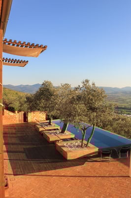 The stunning infinity pool and outdoor living space provide the perfect environment to enjoy what arguably is one of Umbria’s best views. All rooms in the main house and the guest house (serra) offer panoramic views over the Umbrian Valley. As the sun rises over Monte Serano to the east it changes the colours of the casale as the day progresses, unlocking deep warm tones as it sets on the other side of the valley.