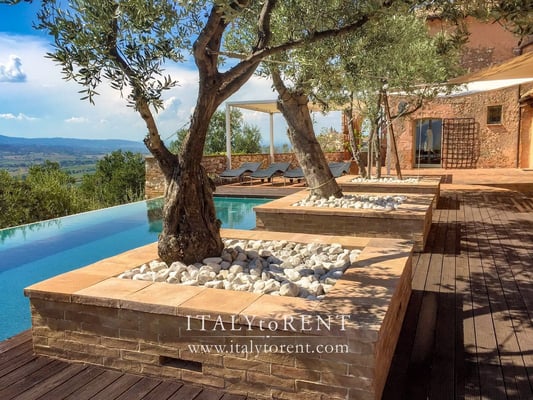 This country house offers privacy and ultimate comfort in the heartland of vibrant Umbria. The perfect combination of history and modernity, luxury and rusticness, secludedness and central location. Distinctively different from traditional holiday homes.