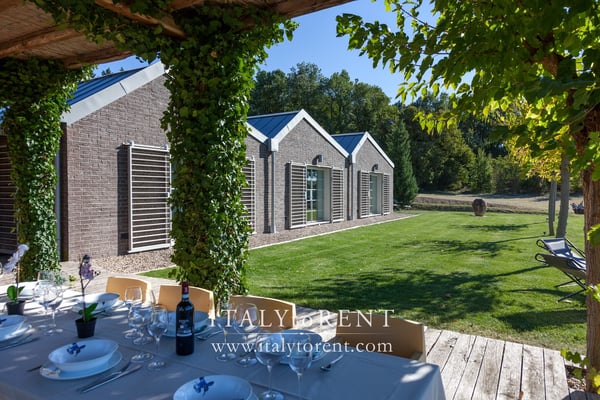 Recently constructed by a valued architect, with state-of-the-art technology and the highest quality materials both in the appliances and the finishings, Villa design features unique architecture, 6 cottages in a row, connected internally, with large French windows which open onto the panoramic garden.