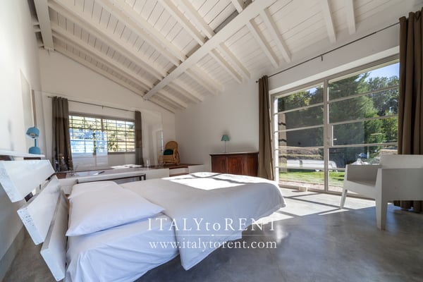 The villa is surrounded by over 1.6 hectares of land with a small olive grove and a manicured garden around the property with plants including lavender, cypress, pomegranate, fruit trees, climbing ivy, mulberry, fig, scented plants and Boston ivy. A small vegetable garden is located behind the villa, in the barbecue area, with pizza oven.
