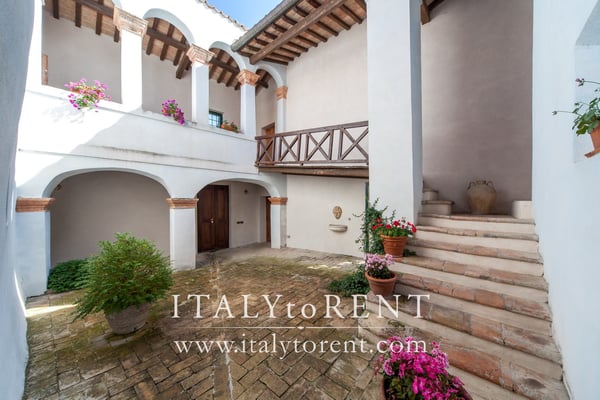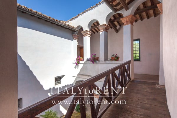 The villa is arranged over two levels. The main entrance opens onto a beautiful cloister that serves as a central connection between the various wings of the house. This is the original cloister where, centuries ago, the nuns of the convent used to meet and pray together.