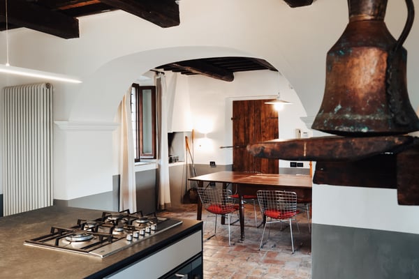 Completely repainted in 2023 and refreshed with new modern beds and contemporary furnishings, the villa blends Umbrian tradition with elegant, understated style. Original features such as large fireplaces, arches, exposed beams, the ancient wooden doors and medieval niches carved into the stone walls and terracotta floors, coexist harmoniously with modern elements, including a spacious contemporary kitchen and a recently renovated Dependance.