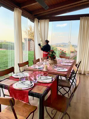 There are plenty of outdoor spaces at Villa Romazzano: a large al fresco dining area under the porch in front of the pool, with table that, extended, can seat up to 15 people, deckchairs and barbecue. The external porch can become a 50 sqm veranda by closing the glass windows in the colder season.