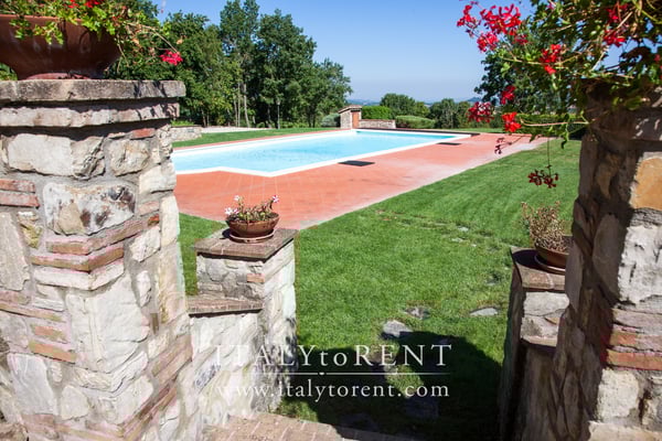 The generously sized pool is just in front of the property. Roman staircase, 15 x 7 meters, 1.4 to 1.9 meters deep. The pool is open all year round. Around the pool flooring, there is shower, sun umbrellas, sun loungers and some stone seats to relax and appreciate the glorious views of Todi historic centre.