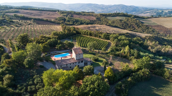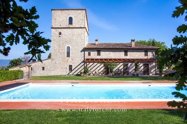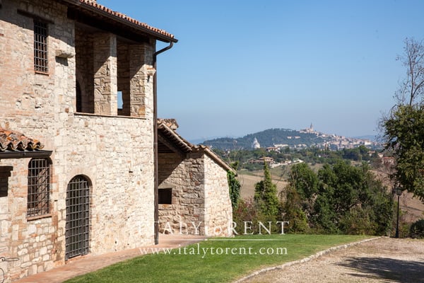 Set in the heart of Umbria’s countryside, Villa Romazzano is an elegant stone-built house including a mediaval watchover tower dating back to the XIV century, protected for its great historical value. Villa del Falco enjoyes a breathtaking view of Todi's historic centre, with bell towers and the huge dome of Santa Maria della Consolazione church.